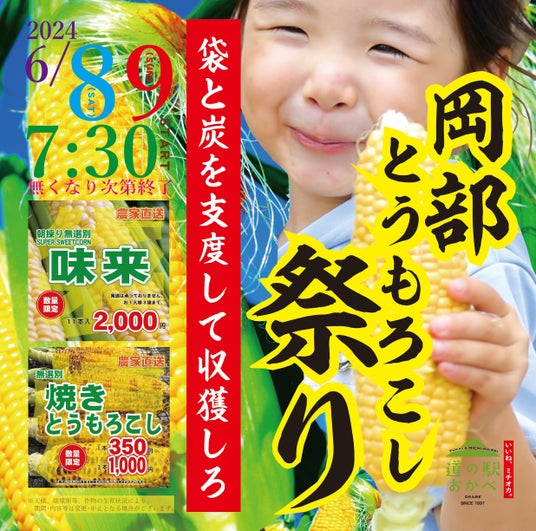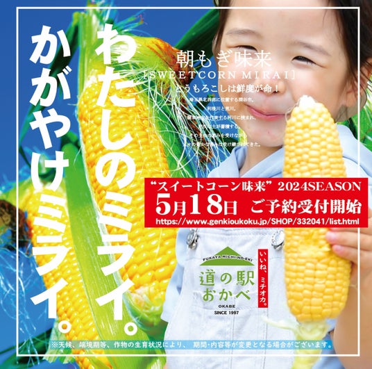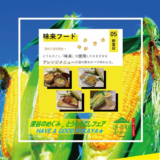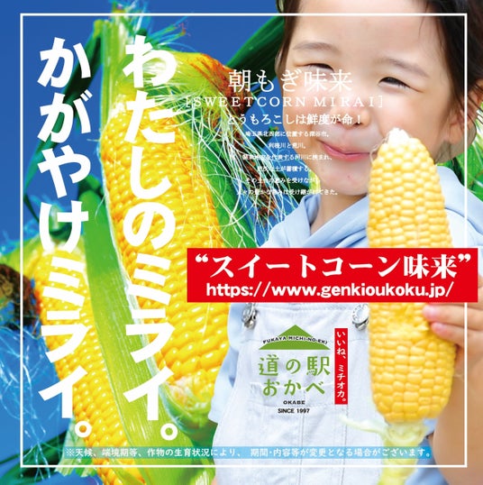 道の駅おかべは「わたしのミライ。かがやけミライ。」を合言葉に、深谷市特産PRとして、『深谷のめぐみ_とうもろこしフェア』を開催します。