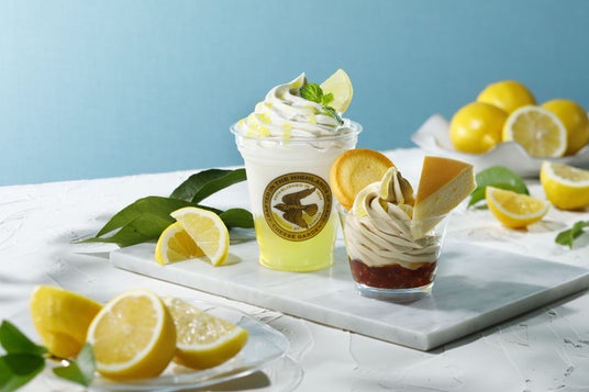 人気のフロマージュドリンクに季節限定のレモンフレーバーが登場します。レアチーズケーキの風味が楽しめるフローズン仕立てのフロマージュドリンクに、レモンの酸味が楽しめるさっぱりとしたレモンゼリーをあわせました。ひんやりとしたミルキー感のあるフロマージュドリンクと混ぜてお召し上がりいただくことで、レモンゼリーの大きさが変わり、食感の変化もお楽しみいただけます。また、ホイップクリームの上には、爽やかな香りひろがるレモンピール入りのレモンソースと酸味のあるレモンパウダーをトッピング。暑い時期にも飲みやすいひんやりドリンクをぜひお楽しみください。
