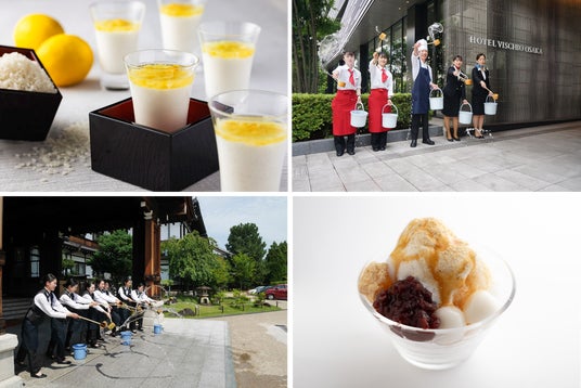 地元のお米を使用したサスティナブルな「お米」メニュー、オリジナルうちわの配布、冷たいウェルカムドリンクの提供など、実施期間・内容はホテルによって異なります。詳細は次頁をご覧ください。