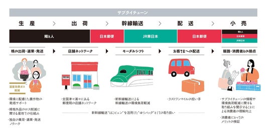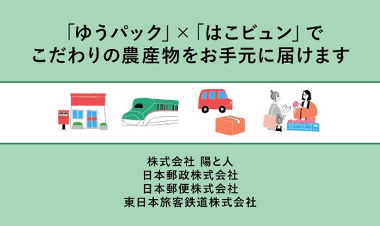 株式会社陽(ひ)と人(びと)(本社:福島県伊達郡国見町、代表取締役:小林 味愛、以下「陽と人」)、日本郵政株式会社(本社:東京都千代田区、取締役兼代表執行役社長:増田 寬也、以下「日本郵政」)、日本郵便株式会社(本社:東京都千代田区、代表取締役社長:千田 哲也、以下「日本郵便」)、東日本旅客鉄道株式会社(本社:東京都渋谷区、代表取締役社長:喜? 陽一、以下「JR 東日本」)の4社は、「物流の2024年問題」や「CO2排出量削減」、「地方創生」などの課題解決の一助を担うことを目的として、業界の垣根を超えたサプライチェーンの構築に取り組んでいます。