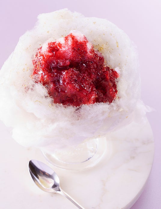 ミックスベリーとバニラアイスクリームのかき氷 わたがしに包まれて