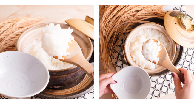 『こめの家』では、お米のエキスパートである“五つ星お米マイスター”が厳選したお米を仕入れています。47都道府県の様々な銘柄の中から、有名なもの、新しくデビューした銘柄、生産量が少なく市場にあまり流通しないような希少な銘柄をピックアップしているため家庭ではなかなか味わうことのできないお米に出会えるとご好評いただいております。さらに、こだわりの炊き水専用水を使って炊くことでツヤ、味、風味が全く違います。こめの家自慢の土鍋ご飯をぜひお楽しみください。