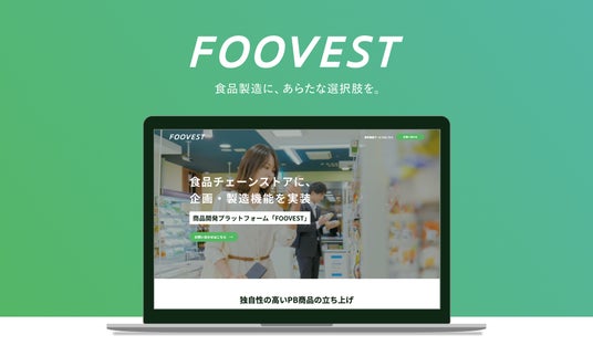 食品の企画・開発・製造をワンストップで提供する「食品製造プラットフォーム FOOVEST」を展開。オリジナル商品開発を強化する食品小売企業と、独自技術を活かした新たな商品企画・販路拡大を目指す製造メーカー・原料産地の双方の課題解決を行っています。