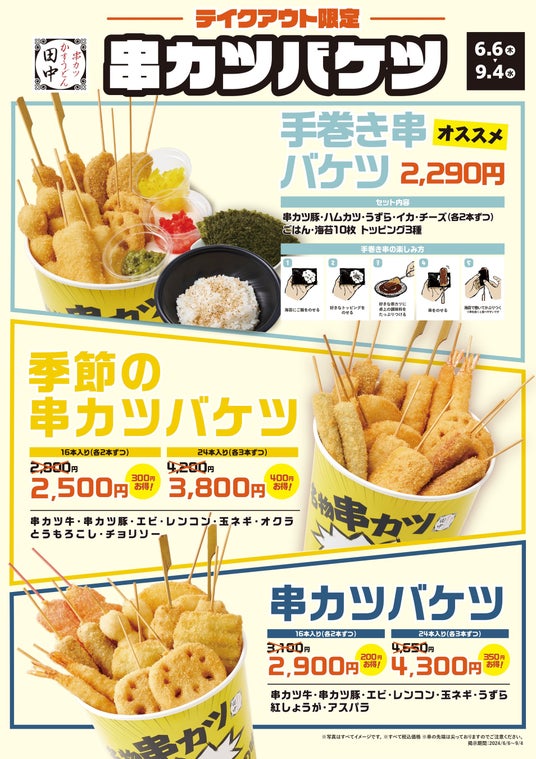 ※「季節のおすすめ串カツバケツ」を含め、串カツバケツシリーズは3種類ご用意しています。