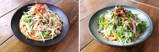 「冷製 豆乳坦々ちゃんぽん」は、胡麻風味が効いた冷たい豆乳ピリ辛スープに冷製もちもち自家製麺が絡み、特製肉そぼろとシャキシャキ野菜が彩る冷製ちゃんぽんです。「冷やし梅しそちゃんぽん」は、特製中華ダレと梅の酸味で夏の暑い季節にぴったりのさっぱりした味わいなので、夏バテで食欲がないときにもおすすめです。