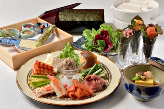 インルームダイニングではしゃぶしゃぶやアラカルトなどの多彩なメニューに加え、2024年7月20日(土)より"洋風手巻き寿司"のご提供を開始いたします。