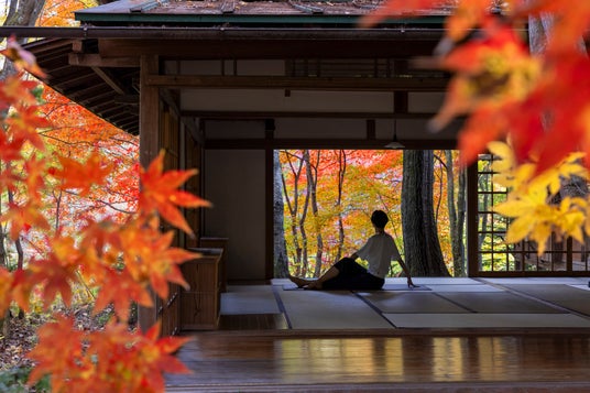 紅葉や秋ならではの草花が咲く敷地内の自然を感じながら、呼吸と体を調える体験を通して、心の感度を高める「秋朝(しゅうちょう)ストレッチ」と「深呼吸入浴法」を行います。