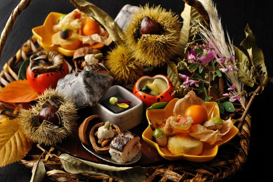 朝一番に味わう食事として、この夏誕生した棚田ラウンジにて、きのこの茶巾入りの「目覚めの一椀」を提供します。出汁は、「一物全体食」の考えをもとに、野菜の皮や根、葉や茎など、通常捨ててしまう部分を含め、さまざまな野菜を丸ごと使った野菜出汁です。野菜の旨味が溶け出した優しい味わいの一杯が、身体に染み渡り、素材本来の旨味を感じることができます。その後は、色とりどりのきのこを使用した鍋や焼き魚、出汁巻き玉子など、栄養豊富な旬の食材を使用した「山の朝食」を提供します。日々表情を変える秋の棚田の情景を眺めながら、野菜が持つ本来の旨味を感じ、栄養バランスのとれた食事を味わうことで、心身のバランスを調えます。
