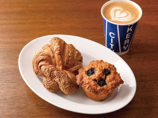 プレッツェルクロワッサン¥380(税込 ¥418)/ ブルーベリーコーンマフィン¥350(税込 ¥385)