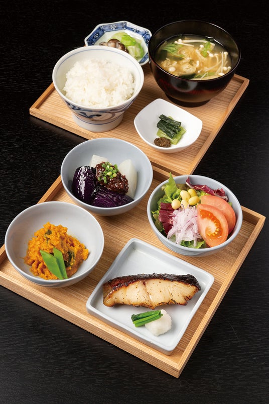 朝食の主食は、オリジナルの銅釜で炊き上げる「酢重ダイニング」ならではの米と味噌汁のごはんセット。または同フロアに同じくオープンを迎える、NY発祥のベーカリー&カフェ「THE CITY BAKERY」の食パンセットをお選びいただけます。主菜は酢重自慢の「魚の味噌漬け焼き」や「豚の角煮」、「ベーコンソーセージエッグ」。副菜は、甘辛い味付けにごはんがすすむ自家製おかか煮干し、信州の醤油でじっくり煮込んだこんにゃくの旨煮など、毎朝10種類以上の和の小鉢が並ぶビュッフェスタイルで。好みに合わせてお召し上がりいただける、酢重の新たな朝食をお楽しみください。