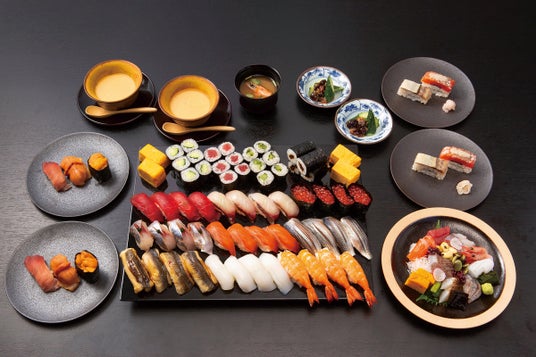 夜にはたっぷりお腹を満たす「60分食べ放題付きコース」を。先付け、刺し盛りなどの一品に、〆さば・信州サーモンの押し寿司をコース仕立てでお出しいたします。そして握りや軍艦、巻物など、毎日20種類以上のネタからお選びいただける60分の食べ放題をご堪能ください。お好きなタイミングに一度だけ「中トロ・うに・日替わりのお決まり3貫」を。鮨を味わい、選りすぐりの酒を愉しむ”呑める鮨屋”をコンセプトにした新たな提案にご期待ください。