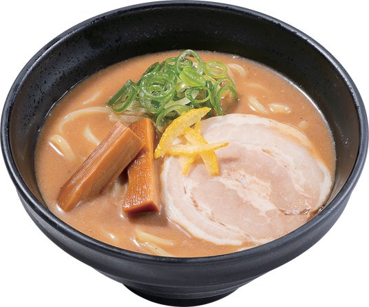豚骨スープをベースに、かつお節や宗田節のほかに、いわしの煮干し、鯖、むろあじの削り節など、様々な魚介の旨みをあわせたインパクトあるスープが、かっぱ寿司オリジナルのもちもちとした心地よい食感の極太麺とよく絡みます。
