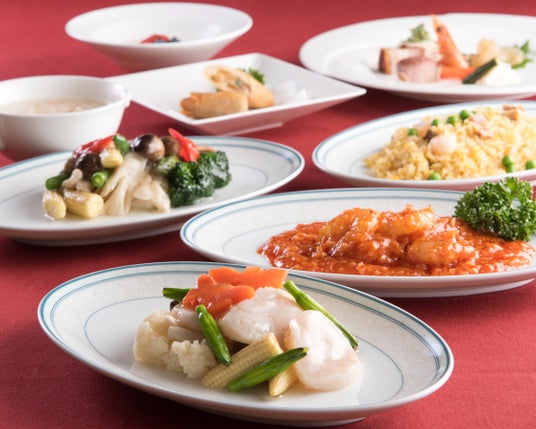 ホタテ貝柱の塩味炒め、海老のXO醤炒め、イカのトウチ炒め、黒酢の酢豚、海老のチリソース、牛肉のオイスターソース炒め、牛肉とピーマンの細切り炒め、青梗菜の塩味炒め、海老の甘辛ソース、海老のマヨネーズソース、スペアリブのトウチ蒸し、ホタテ貝柱とイカの湯引き