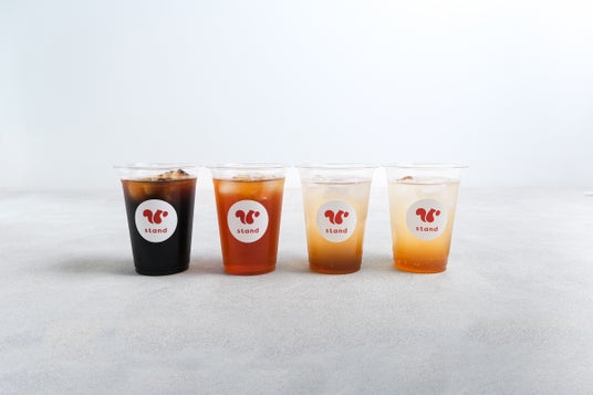 (左から)アイスコーヒー、アイスティー(ダージリン)、クラフトジンジャーエール、アロマコーラ