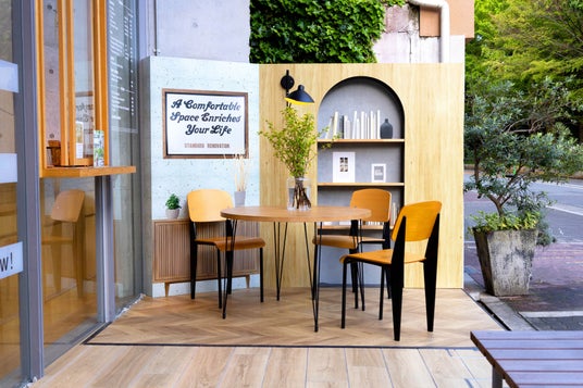 ショーウィンドウ一面、ディスプレイと共に企画デザインから制作まで自社で完結。空間プロデュースを手掛けるStandardらしい店頭になります。リノベーション+カフェを融合し、都会に溶け込むデザインもポイントです。Standardが考える「 居心地いい空間 」を体現できる木材・モルタル・大谷石を掛け合わせたミックススタイルで、今の季節に気持ちいいテラス席をお楽しみいただけます。