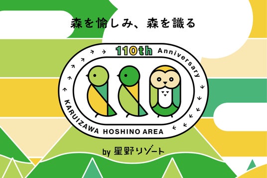 星野エリア110周年のロゴは野鳥のデザインを取り入れています。国設「軽井沢野鳥の森」に生息する多くの野鳥と共生してきた歴史と、110周年を色鮮やかに愉しむ思いを込めました。