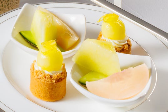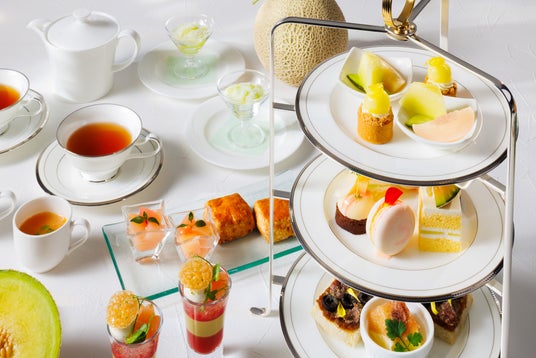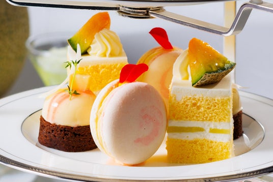 旬の果実を味わう夏限定のアフタヌーンティーとして、メロンと桃が主役のスイーツ・セイヴォリー12品をご用意します。使用するメロンと桃は製菓料理長がその時期に最も状態の良いものを厳選し、まろやかな甘みと芳醇な香りが特徴の赤肉メロンと、爽やかな味わいの青肉メロンの2種類をお楽しみいただけます。
