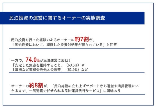 - 調査名称:民泊投資の運営に関するオーナーの実態調査