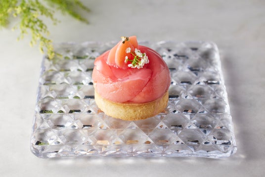 「ヴェリーヌペーシュ」は、滑らかで濃厚な甘みのある白桃のババロアと、さっぱりとした赤桃のジュレを層にしました。桃のコンポートと白ワインのジュレ、シャンティークリームを入れ、仕上げにも桃の果実を飾った、旬の桃尽くしのグラスデザートです。トロピカルな味わいをお楽しみいただける「シャルロットパイン」は、石垣島産のパイナップルジュースを使用したゼリーを軽やかなシャルロット生地で包み込みました。定番の「マンゴープリン」は、爽やかな味わいが夏にぴったりなジャスミン茶のゼリーを合わせた、香り豊かな一品です。「白桃タルト」は、アーモンドクリームを入れて焼き上げたタルト生地に、桃の風味を付けたカスタードクリームを絞り、桃のコンポートとゼリーをあふれそうなほど盛り付けました。サクサクのタルト生地とジューシーな果実の食感のハーモニーをご堪能ください。