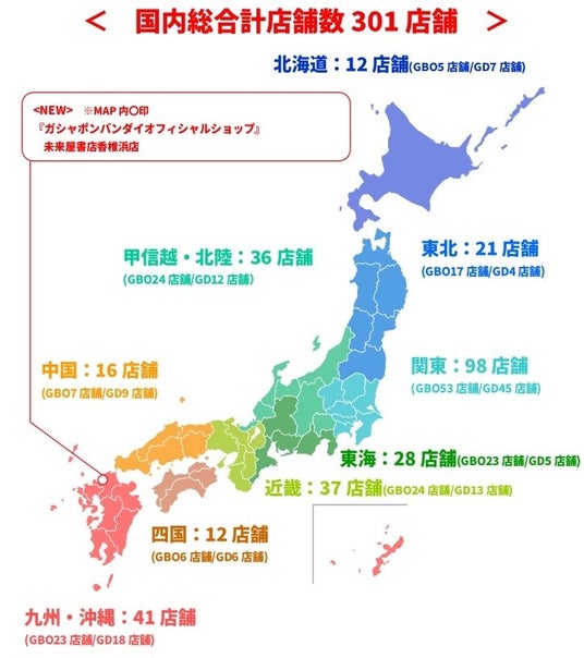 『ガシャポンバンダイオフィシャルショップ』未来屋書店香椎浜店は、300面を一堂に展開するバンダイ公式の大型カプセルトイ専門店として、福岡県福岡市に出店します。バンダイの新商品をすべて取りそろえ、ここでしか味わえない「ガシャポン体験」を提供することで、「ガシャポン」の新たな魅力を発信していきます。また書店ならではのガシャポン体験をお届けするべく、随時お客さまへキャンペーン情報の発信等を行ってまいります。