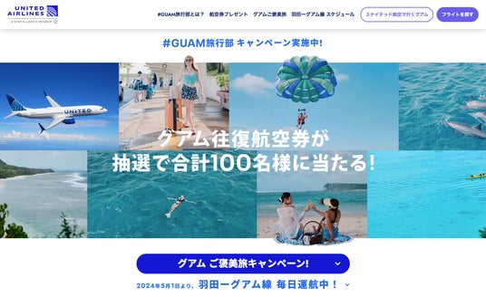 ユナイテッド航空(本社:シカゴ、最高経営責任者:スコット・カービー)は、日本人観光客のグアムへのさらなる需要喚起を目的とした『#GUAM旅行部キャンペーン』の一環として、『グアムご褒美旅キャンペーン』を開始することを発表しました。