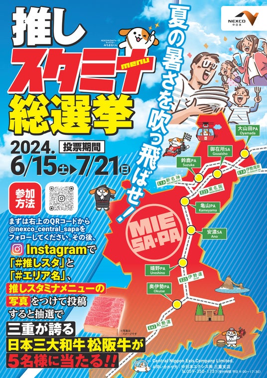 また、「推しスタミナメニュー」をお召し上がりいただいたお客さまを対象に三重県が誇る日本三大和牛「松阪牛」が抽選で当たるキャンペーンを同時開催!Instagramで「推しスタミナメニュー」の写真と「#推しスタ」、「#SA・PA名」をつけて投稿してください。