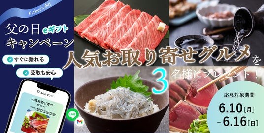 父の日eギフトキャンペーン期間中に大五グルメセレクションでeギフトをご利用のいただいた方の中から抽選で大五グルメセレクション人気お取り寄せグルメを合計3名様にプレゼント。