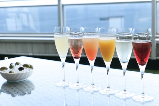 シャンパンカクテル5種 (ミモザ、ベリーニ、ホワイトミモザ、キール・ロワイ