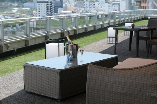 6Fに位置するテラスは熱海の海を一望できるロケーション。初島、大島を望み、海を行き交う遊覧船を眺める、海と空を独り占めする贅沢なテラス時間。爽やかな潮風が出迎られ、デイタイムは陽光に海が煌めき、どこまでも続く碧空がくつろぎの時間を提供してくれます。