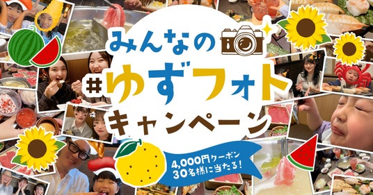 物語コーポレーション(本社:愛知県豊橋市/代表取締役社長:加藤 央之)が全国96店舗を展開する『寿司・しゃぶしゃぶ ゆず庵』(以下、ゆず庵)は、 2024年月6月11日(火)よりアプリクーポン4,000円が当たるSNSキャンペーン「#ゆずフォト」を開催いたします。皆様からのたくさんの投稿をお待ちしております。