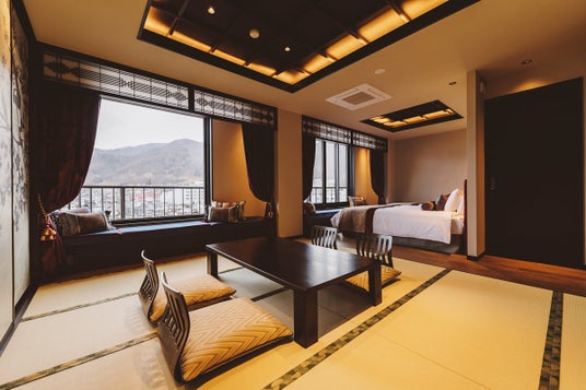 また、今年の3月には館内で3部屋だけの和洋室「山神」もオープンしました。多めのご人数でも皆さんご一緒に楽しんでいただけます。客室内には大きな窓が2つあり、右側の窓からは街の眺望が、湖側の窓からは部分的ですが、諏訪湖が美しく見えます。(※こちらのお部屋は花火大会時、桟敷席のご用意です)