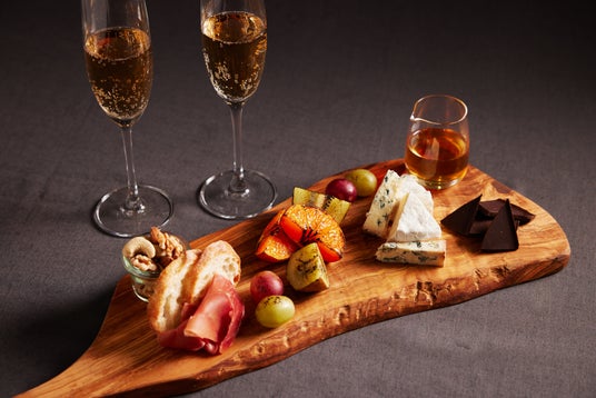 焚火で焼き、甘みが増したフルーツの美味しさを引き立てるために、アペロセットを提供します。地元の酪農家の協力のもと、セレクトしたチーズ2種類に加え、生ハム、ダークチョコレートなどをフルーツと組み合わせて楽しめます。例えば、焚火で焼いて甘みと香りが増したぶどうと芳醇な香りが特徴のブルーチーズは、合わせるとより豊かな味わいになり、相性抜群です。フルーツの甘みと相性の良いシャンパンを片手に、焼いた旬のフルーツを自分好みの組み合わせで堪能できます。