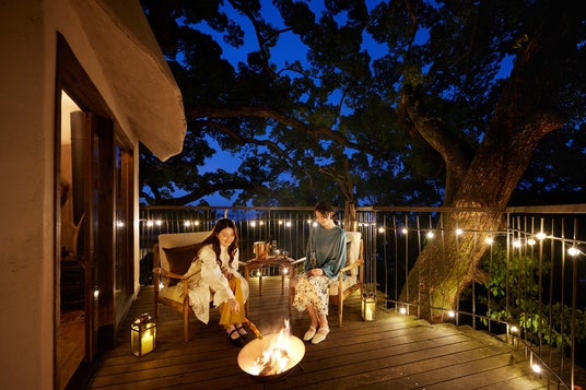 空と海と森が彩る空間で、心弾む滞在が叶うリゾート「星野リゾート リゾナーレ熱海」では、2024年9月1日~11月30日の期間、1日1組限定で樹齢300年の楠に佇むツリーハウスを貸し切り、優雅に楽しむ「森の夕暮れフルーツアペロ」を初開催します。ホテル敷地内にある「森の空中基地 くすくす」のツリーハウスに設えられた焚火でフルーツを焼き、シャンパン片手にチーズなどと合わせて堪能できます。夕暮れ時の森の中で、焚火を囲みながらフルーツを味わう、優雅なアペロタイムを過ごすことができるイベントです。