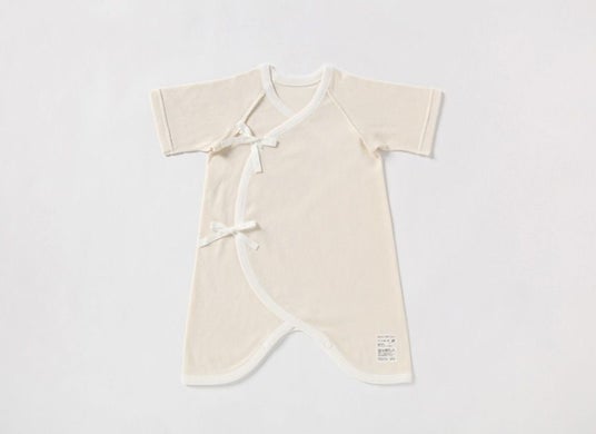 短肌着と同素材のコンビ肌着。たくさん洗濯しても型崩れせず、そしてやわらかい風合いを出せる素材です。ひも、タグネーム、縫い糸まで、オーガニックコットン100%にこだわっています。