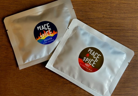 ご購入時にホット(辛口)、デス(激辛)の2種類からセットする内容をお選びいただけます。なお、「ピーススパイス」は、カレーの味変だけでなく、うどんに入れればカレーうどんに、パンに塗ればカレーパンになる使い勝手の良いスパイスです。