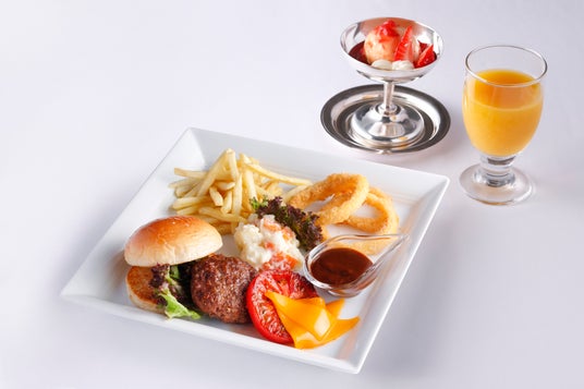 *オレンジジュース、ストロベリーサンデー付き。