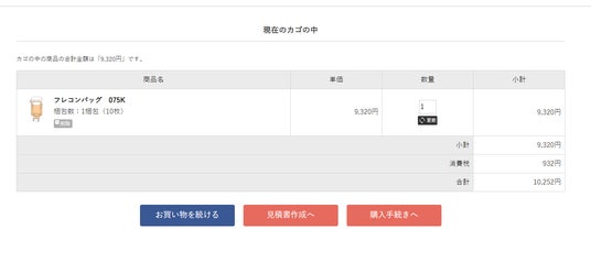 カートに入れてから見積書の発行が可能です