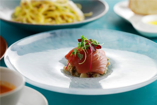 ヨコワのカルパッチョ 白いんげん豆のサラダ