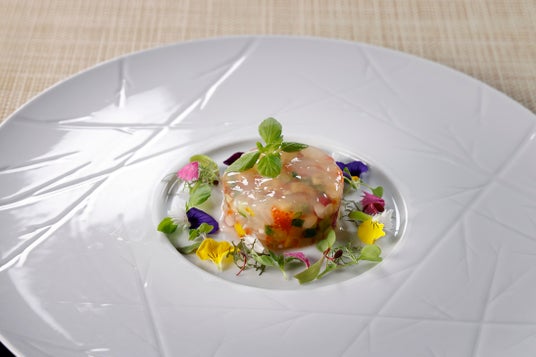 実演メニューの「鮮魚と彩り野菜のタルタル 潮ジュレ」
