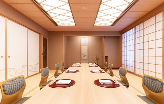 顔合わせのお食事会や祝い席、接待など少人数でお集まりいただける「うしお」。プライベートな空間でお食事をお楽しみください。