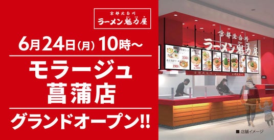 京都北白川ラーメン魁力屋をチェーン展開する株式会社魁力屋(https://corp.kairikiya.co.jp/本社:京都市中京区、代表取締役社長:藤田 宗、以下魁力屋)は、2024年6月24日(月)に「京都北白川ラーメン魁力屋 モラージュ菖蒲店」を埼玉県久喜市にグランドオープンいたします。