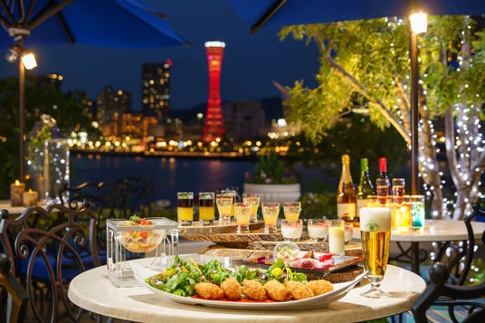 同館総料理長であり、神戸マイスターに名を連ねる中村 実が手掛ける料理は、お一人ずつ提供するウェルカムプレートの他に、冷製・温製のブッフェメニューをご用意。さらに姉妹施設「ル・パン神戸北野」のパティシエによるスイーツもブッフェ形式でお召し上がりいただけます。ワインやビール、カクテルなど70種類以上のドリンクも。この場所でしか体験できない絶景ビアガーデンをご堪能ください。