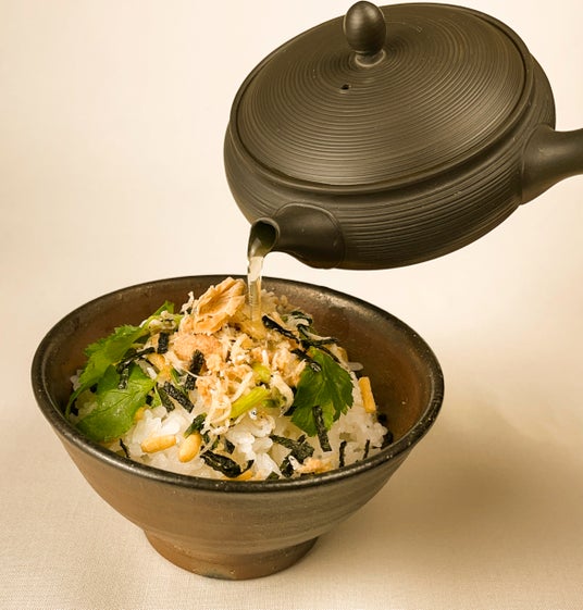 「炙りキングサーモンと鮭の山漬ちりめん」のお茶漬け