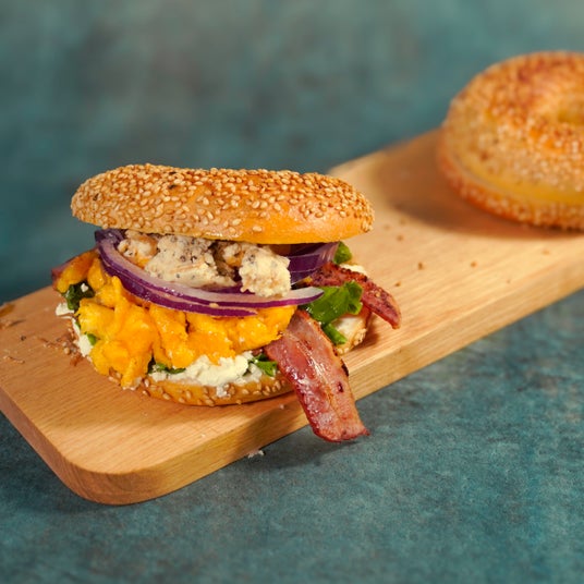「3種のチーズと生炊ちりめん」のベーグルサンド