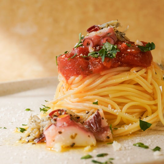 「地たこのペペロンちりめん」のトマトソースパスタ