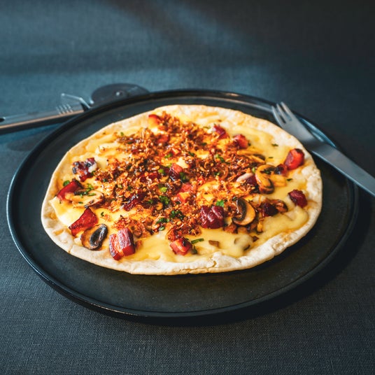「フランス産発酵バターとアーモンドちりめん」のベーコンピザ