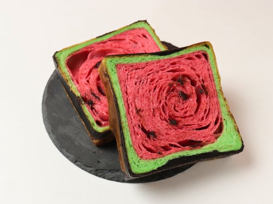「ブーランジェリー リリッカ」では、プレーン、メープル、ショコラなどのデニッシュ食パンを定番として常時、5~10種類展開し、その他に季節限定商品を販売しています。季節限定商品は、その季節らしさを大切にし、美味しさはもちろんのこと、楽しさや驚きを提供したいと考えています。「スイカデニッシュ」は、できるだけ本物のスイカに見た目を近づけ、切った時に鮮やかな赤い色がパッと目に飛び込むよう考えられています。本物のスイカらしさを追求して、種もチョコチップで再現しました。昨年初めてテスト的に発売したところ、連日売り切れが続くほどの大ヒットとなったため、今年も発売を決定しました。