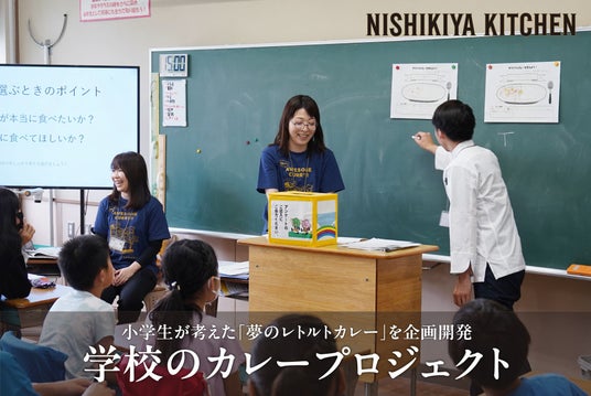 「世界の料理を『カンタン』に。」をコンセプトに掲げるレトルト専門店 NISHIKIYA KITCHEN(ニシキヤ キッチン)(株式会社にしき食品 本社:宮城県岩沼市、代表取締役:菊池洋)は、2023 年に実施し、累計 8,400 食売れた、小学生と一緒にオリジナルレトルトカレーをつくる「学校のカレープロジェクト」を 2024 年も実施します。その初回として 6 月 7 日(金)に、東京都豊島区立豊成小学校の児童に、特別授業を行い ました。本プロジェクトはこどもたちの夢を叶え、食育に繋がる取り組みを目的として 2023 年より開始し、 今年で 2 回目となります。昨年のプロジェクト終了後、当時 5 年生だった児童から「私たちもカレーをつく りたい!」という声があがり、2024 年 4 月にニシキヤキッチンへ約 60 案のカレーのアイディアが届きまし た。児童の夢を叶えるべく、ニシキヤキッチンとして再びプロジェクトを立ち上げました。今年は全 7 回の 特別授業を予定しており、ニシキヤキッチンのスタッフの他、株式会社良品計画(本社:東京都文京区、代 表取締役社長:堂前宣夫)と TOPPAN 株式会社(本社:東京都文京区、代表取締役社長:齊藤昌典)が先生 となり特別授業を実施いたします。最終的には、2025 年 1 月 22 日の「カレーの日」の完成に向けて、2 種 類のレトルトカレーをつくり学校給食で提供いたします。
