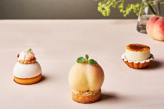 セイボリーには、風味豊かな桃のビシソワーズ、桃に海老とバジルペーストを合わせたヴェリーヌ、サクッとしたパイ生地にスモークサーモンと桃を挟んだフィユテなどバラエティ豊かにご用意します。甘い香りとみずみずしい果肉が特徴のあら川の桃の魅力を堪能しながら、優雅なティータイムをお過ごしください。