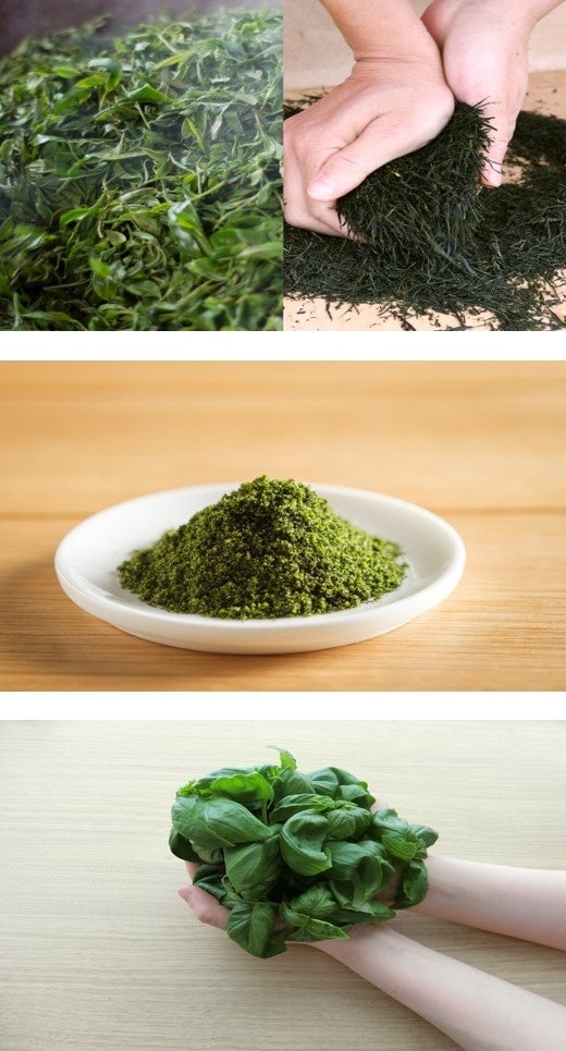 (1)日本茶の製法で引き出した“甘い香りと深い旨味”の『深蒸しバジル』を採用